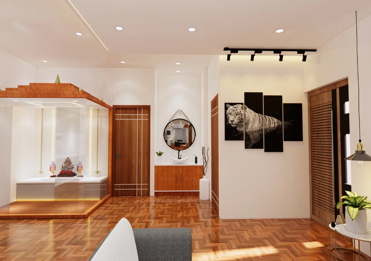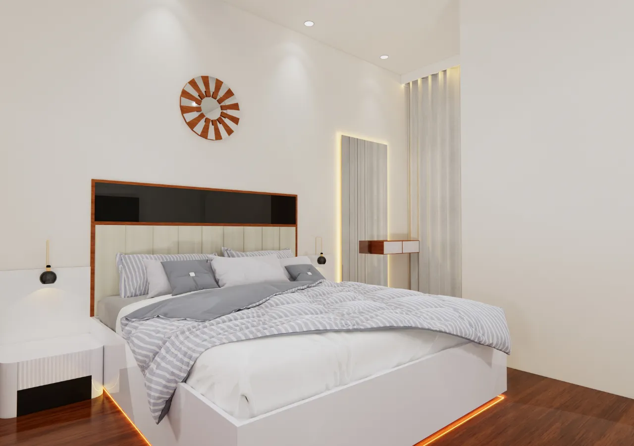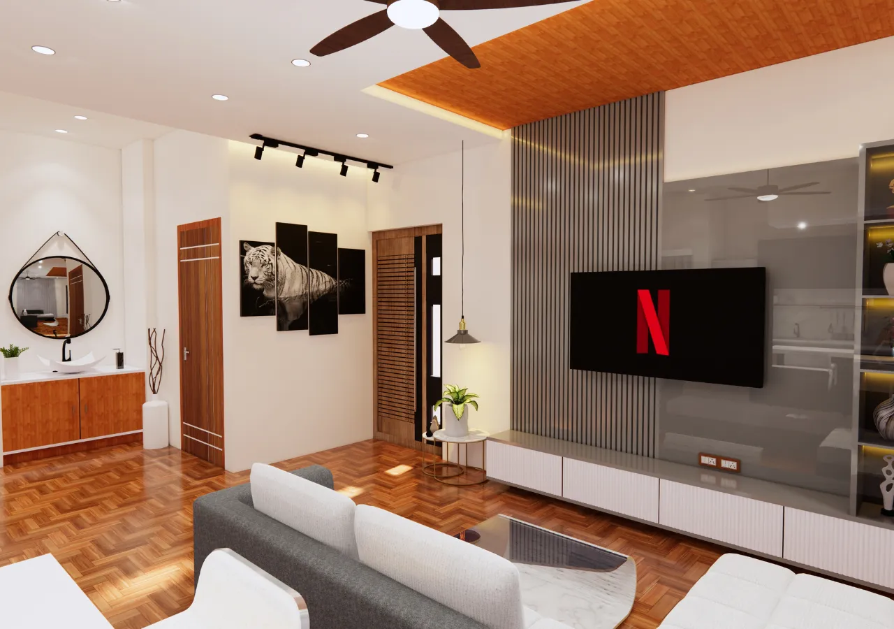Completed in 2023 over a span of 6 months, this interior design project in Bangalore reflects a perfect blend of elegance, functionality, and fine craftsmanship. The space was transformed with a focus on aesthetic appeal and utility, featuring premium-quality woodwork that adds warmth and sophistication to the interiors.